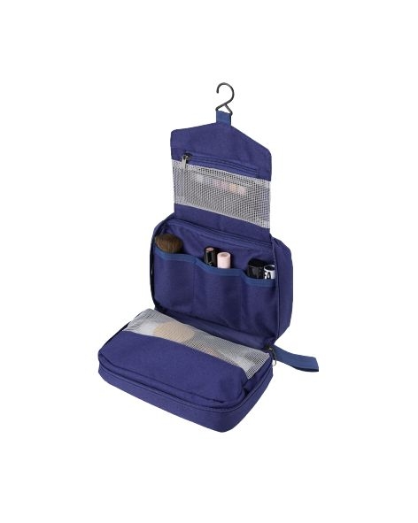 Mantenha seus itens de higiene organizados com esta nécessaire de grande capacidade, perfeita para viagens e o dia a dia. Ela possui três áreas de armazenamento: um bolso superior em malha, ideal para pequenos itens; um compartimento central com zíper para itens maiores e três bolsos organizáveis para fácil acesso; um bolso inferior em malha para guardar objetos mais volumosos. Prática, vem com um gancho para pendurá-la e facilitar o acesso aos produtos. E ainda contém um bolso externo com menos espaço, mas ideal para carregar itens menores. Feita em poliéster, é compacta e fácil de transportar, cabendo em mochilas e malas, além de um espaço com material emborrachado, que permite uma personalização exclusiva.