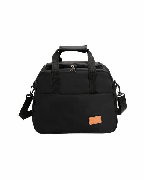 Bolsa térmica confeccionada em Oxford com fechamento em zíper e capacidade de até 20 litros. O compartimento interno possui revestimento térmico em PEVA. Conta com compartimento frontal de zíper, um par de bolsos laterais em tela de tecido respirável com elástico. Apresenta ainda duas alças de mão com suporte de juntura e alça transversal regulável e removível, com mosquetões para encaixe nas fivelas laterais. Acompanha plaquinha em couro sintético fixada com velcro.
